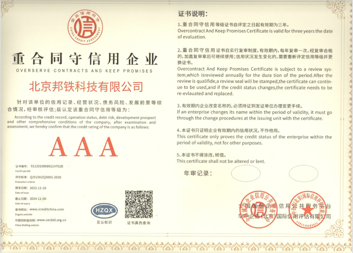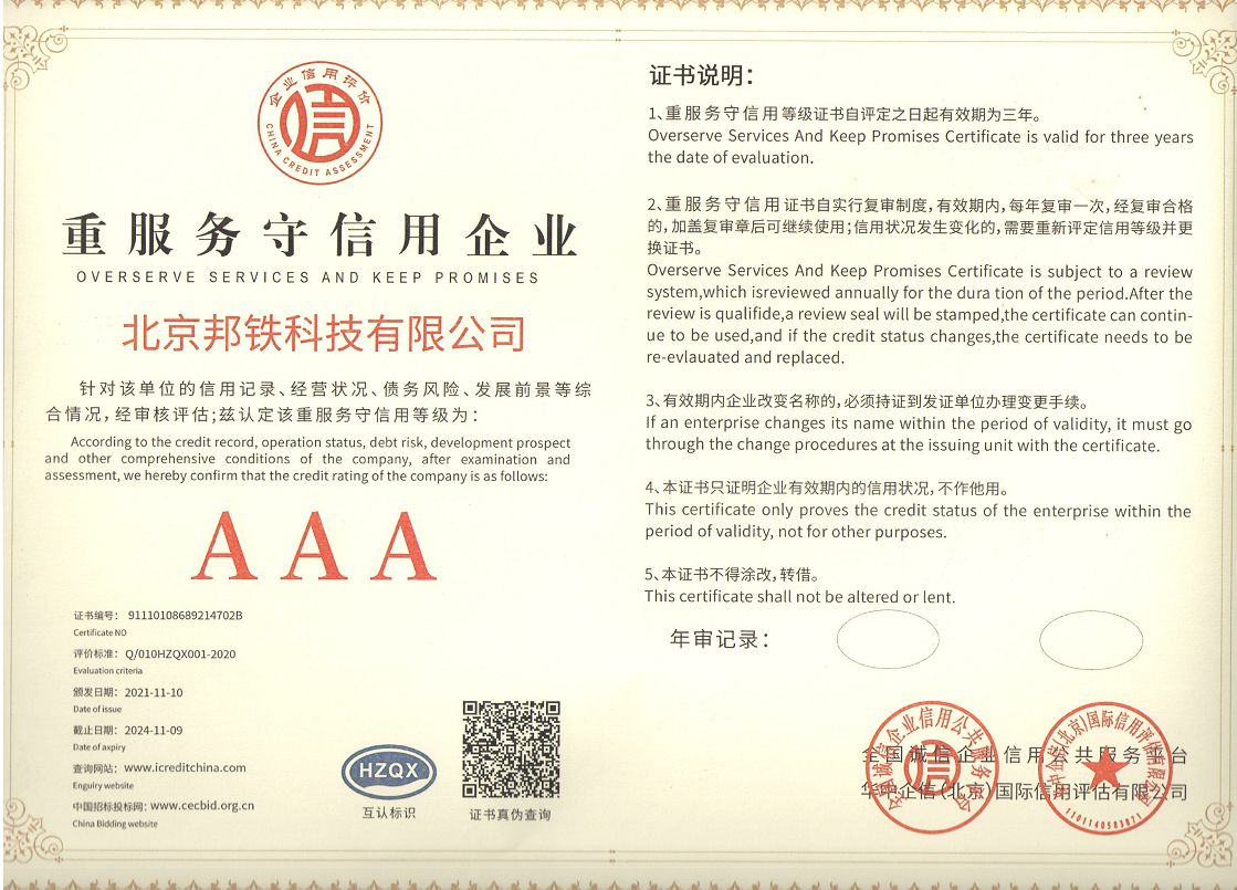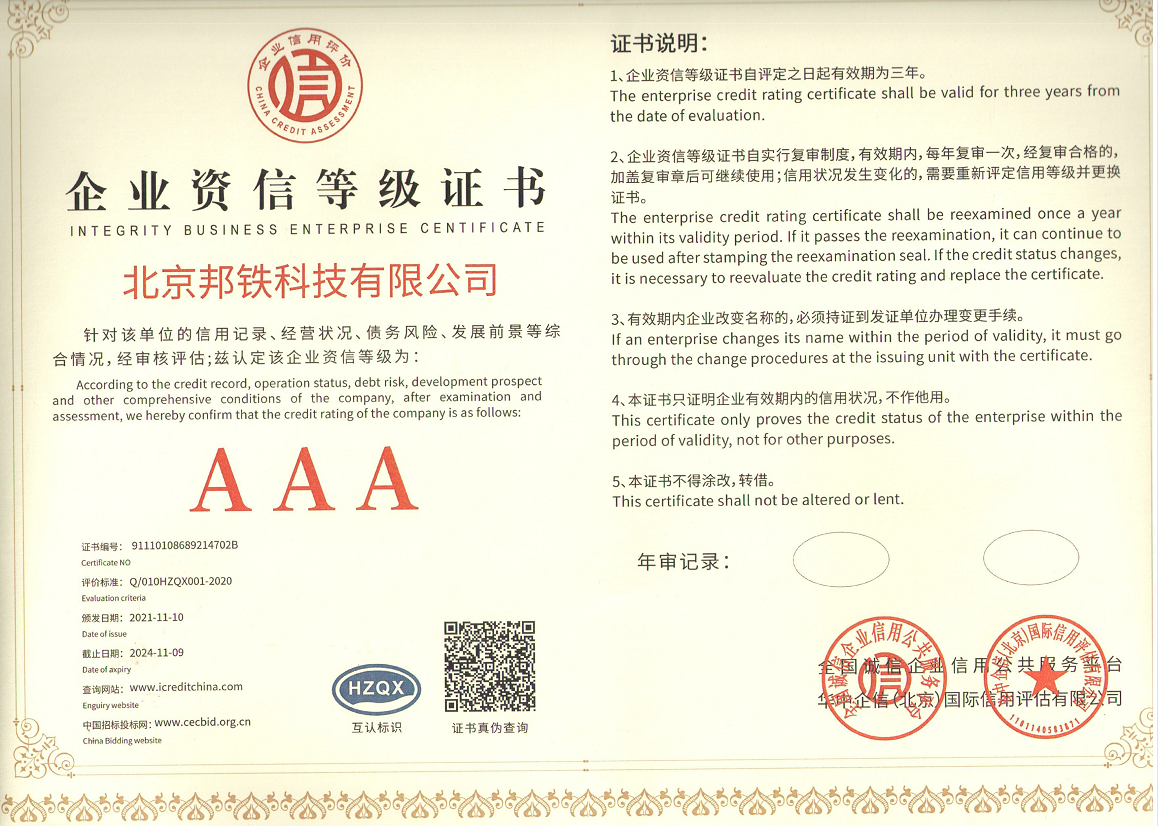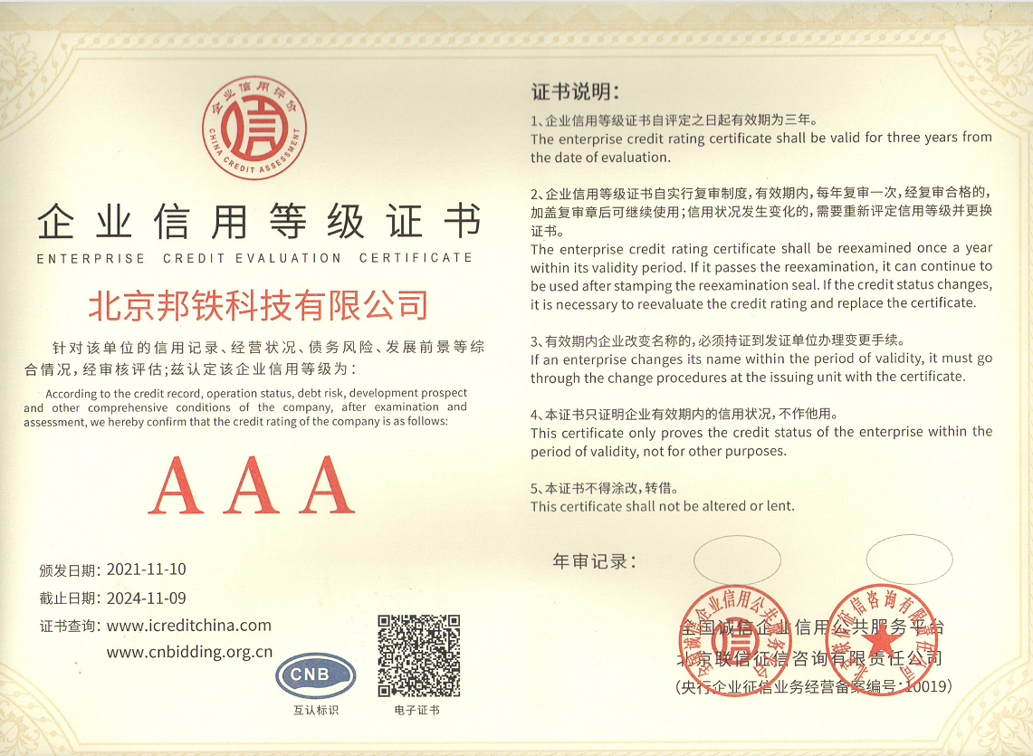 企業(yè)信用等級(jí)登記等級(jí)證書-AAA證書